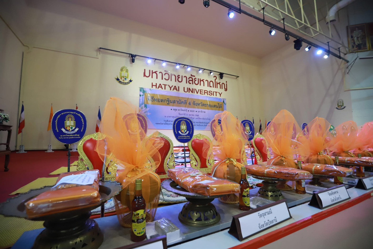 วันที่ 11 ตุลาคม 2568 มหาวิทยาลัยหาดใหญ่ จัดทอดกฐินสามัคคี 4 จังหวัดชายแดนใต้ ณ อาคารศูนย์กีฬาและกิจกรรมนักศึกษา ได้แก่ จังหวัดสตูล ปัตตานี ยะลา และนราธิวาส
