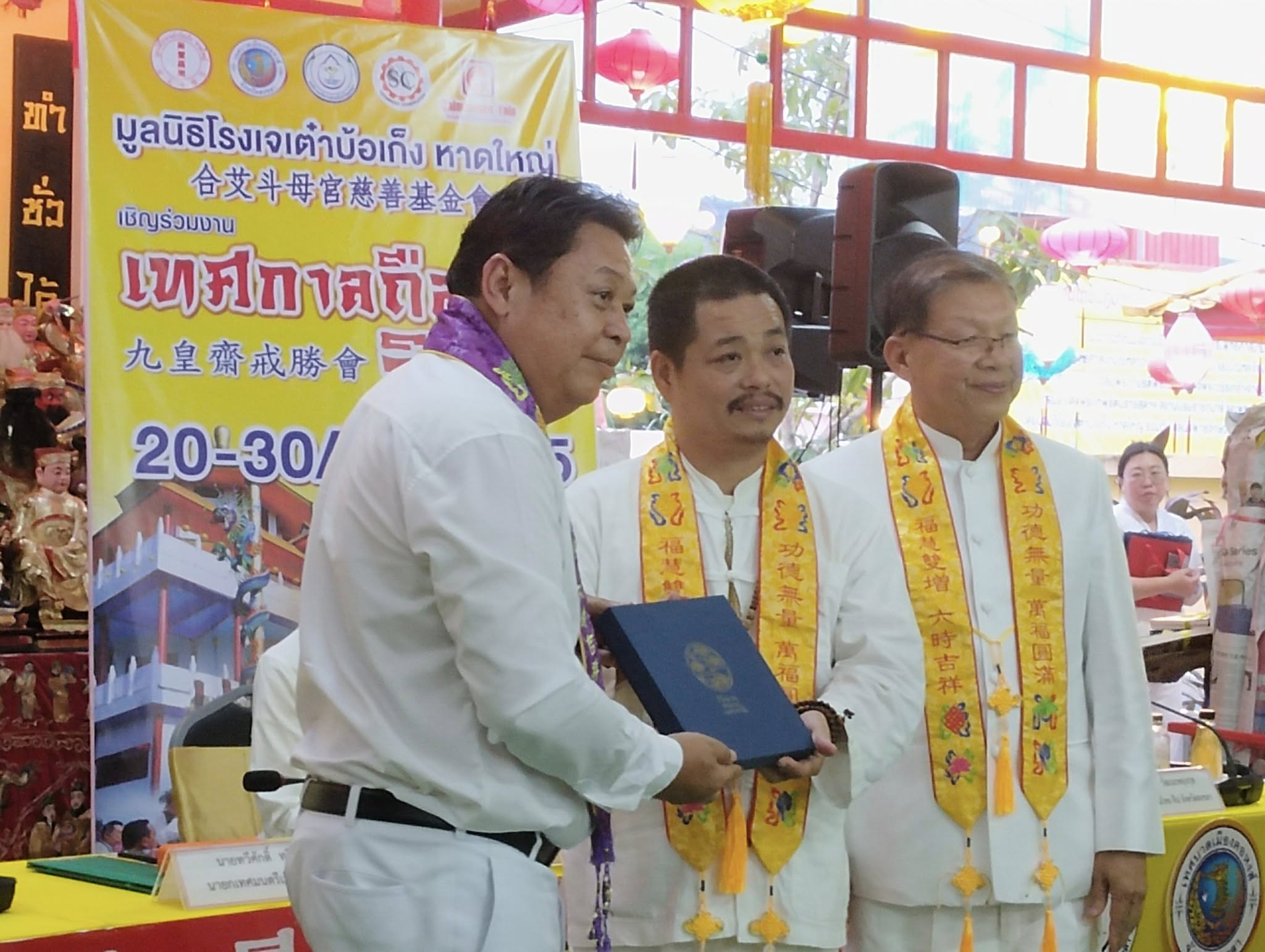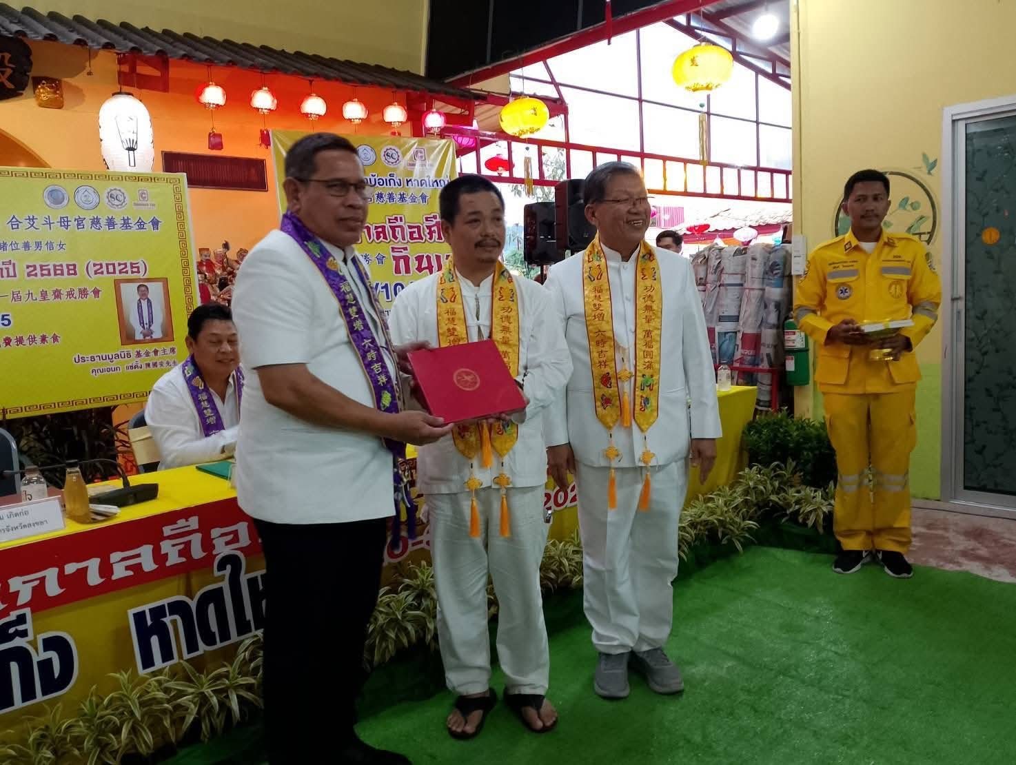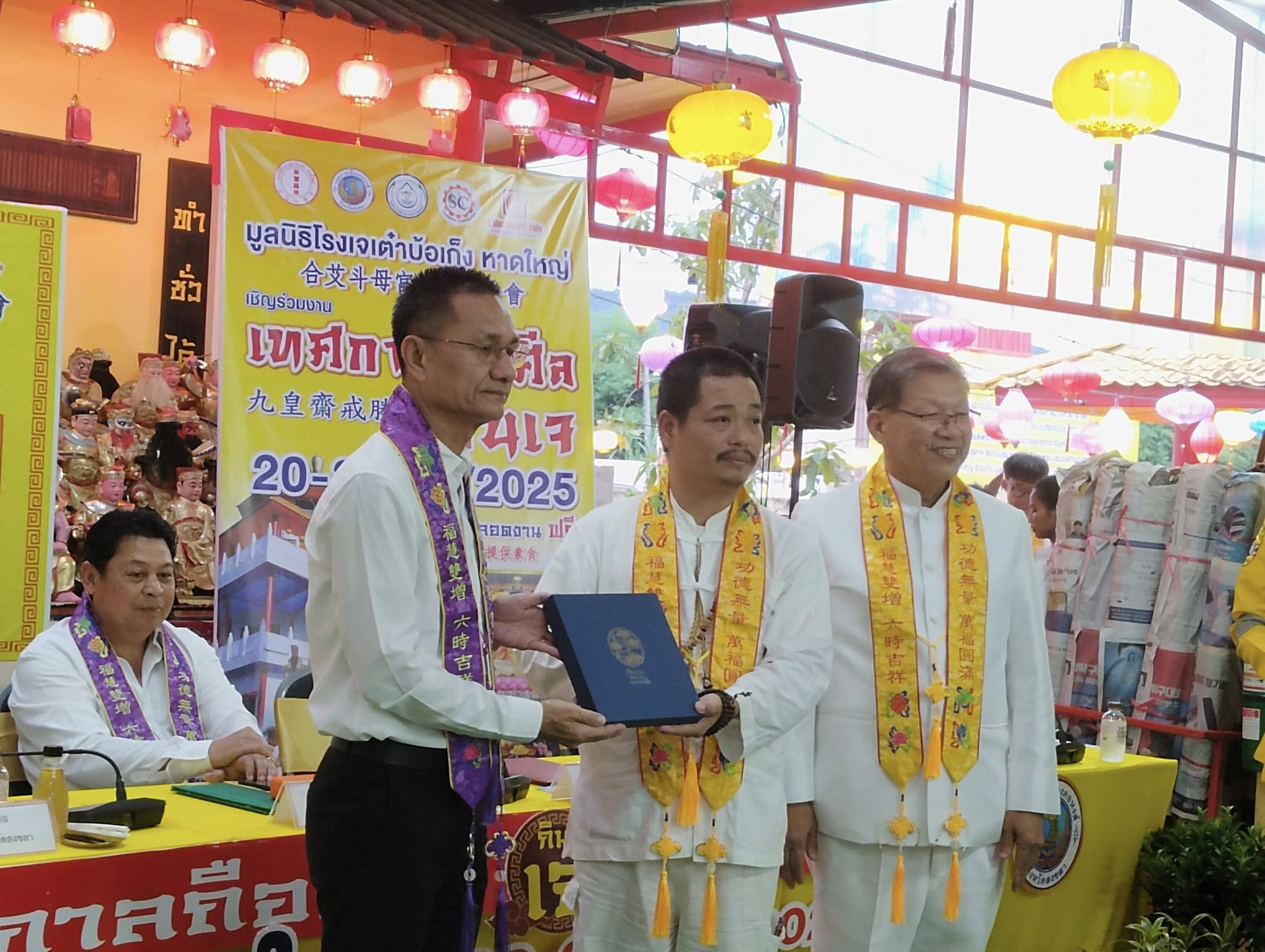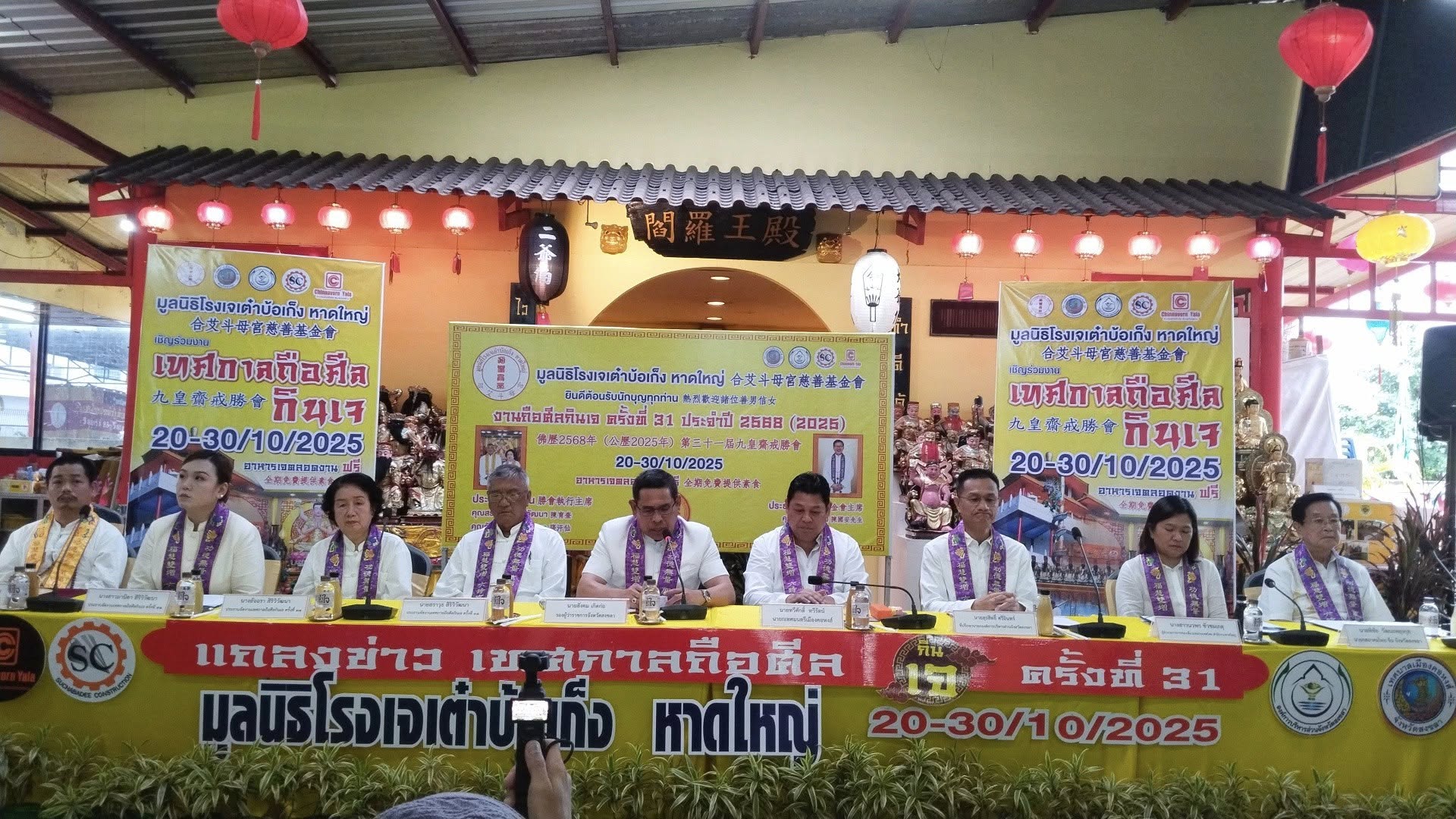 ในปีนี้ ขอขอบคุณ คุณสราวุธ และคุณอัจฉรา สิริวิวัฒนา จากห้างหุ้นส่วนจำกัด ชินวรยะลา ก่อสร้าง เป็นประธานในงานเทศกาลถือศีลกินเจ เป็นเจ้าภาพ ในช่วงวันที่ 20-30 ตุลาคม 2568 มีพิธีที่น่าสนใจ ใคร่ขอเรียนเชิญ แขกผู้มีเกียรติ ผู้สื่อข่าว ช่วยประชาสัมพันธ์ กิจกรรมดังกล่าวย่อมเป็นประโยชน์ต่อบ้านเมือง ช่วยกระตุ้นส่งเสริมการท่องเที่ยวได้เป็นอย่างดี และเป็นภาพลักษณ์ของเมืองที่สะท้อนอัตลักษณ์วิถีที่โดดเด่นและงามสง่าที่ได้สืบสานวิถีปฏิบัติของเต๋าและพุทธมหายาน เพื่อคงไว้ซึ่งศาสนพิธีที่เป็นมรดกแห่งภูมปัญญาสู่อนุชนในรุ่นต่อๆไป