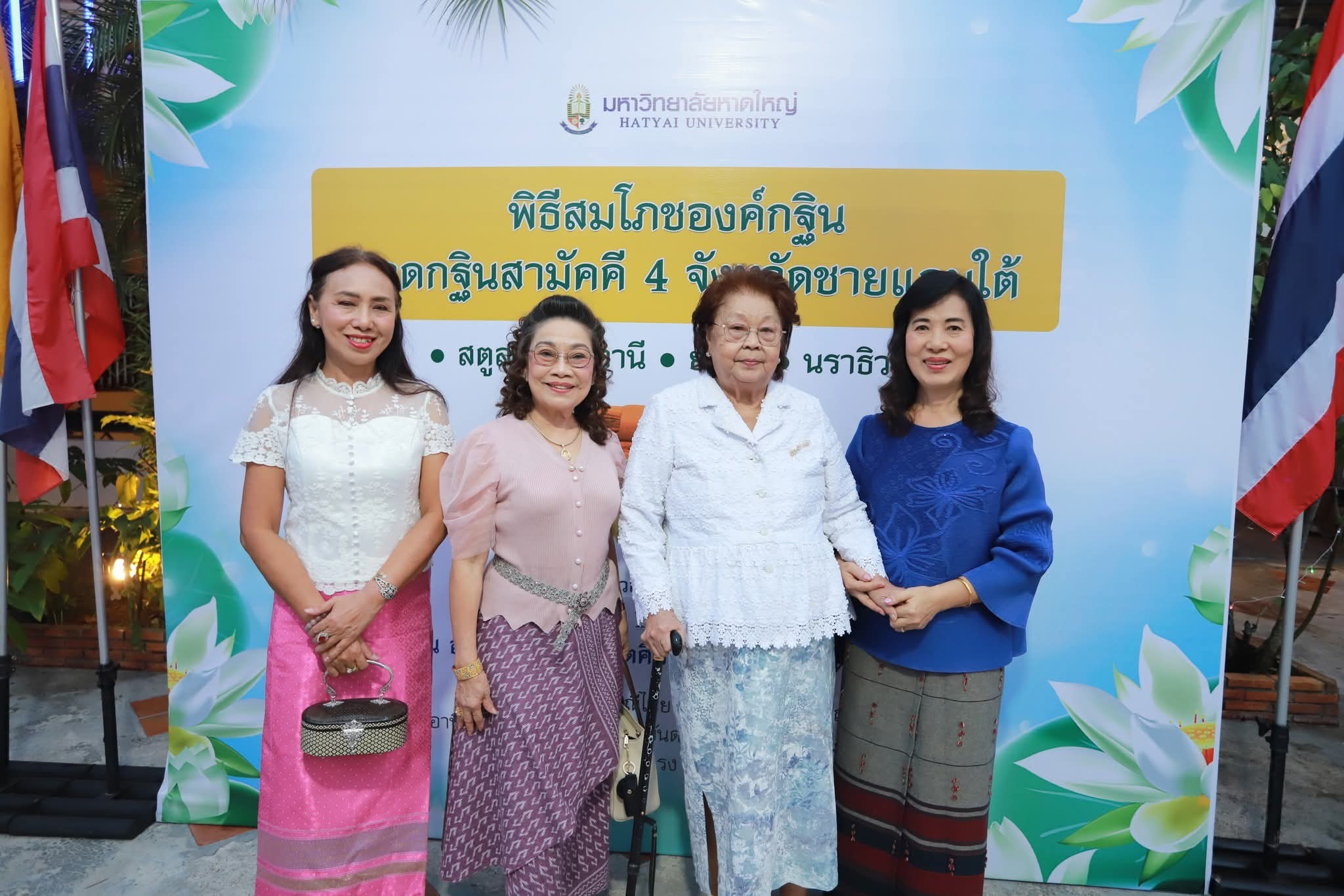 ท่านอาจารย์ประณีต ดิษยะศริน ผู้ก่อตั้งและอุปนายกสภามหาวิทยาลัยหาดใหญ่, ผู้ช่วยศาสตราจารย์ ดร.วิทวัส ดิษยะศริน สัตยารักษ์ อธิการบดีมหาวิทยาลัยหาดใหญ่, ดร.ธารพรรษ สัตยารักษ์ รองอธิการบดีฝ่ายบริหาร รวมทั้งผู้บริหาร และบุคลากร ร่วมงานทอดกฐินสามัคคี 4 จังหวัดชายแดนใต้
